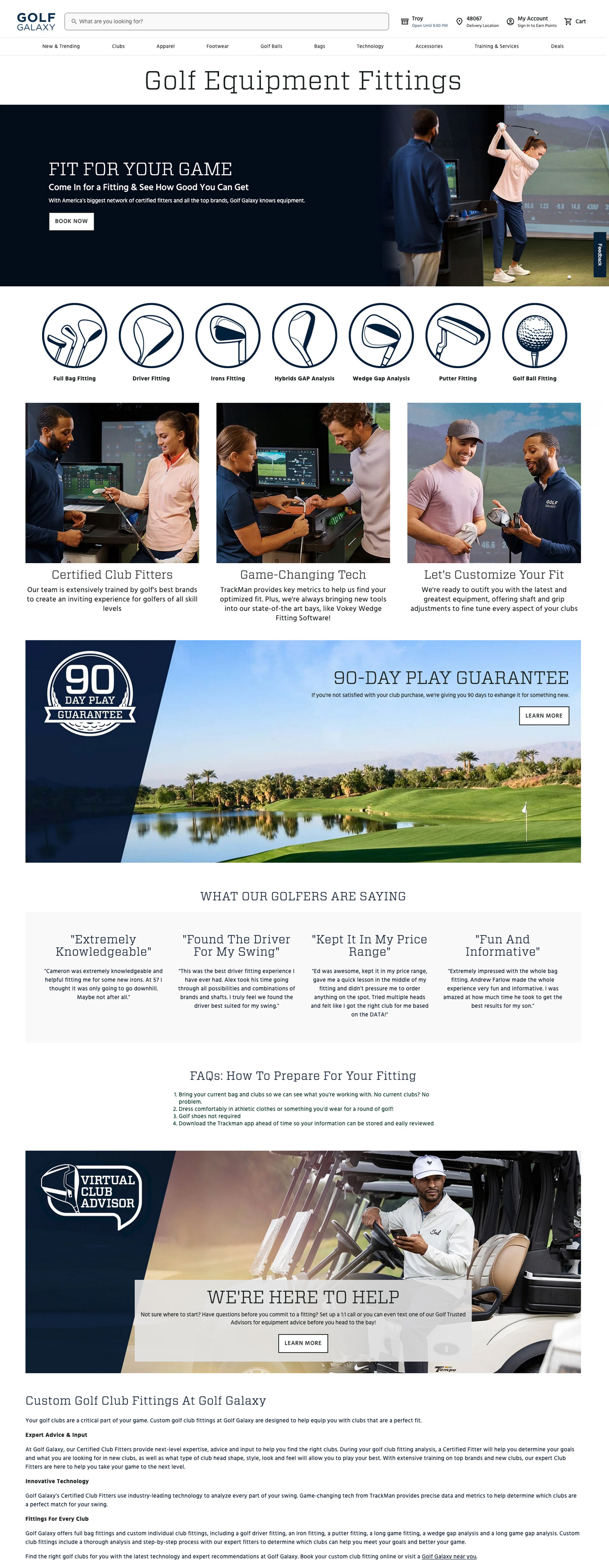 Golfers perform best when they can feel their gear firsthand. This page was built from the ground up using provided copy direction to guide the layout and design, encouraging customers to visit in-store for a personalized fitting.