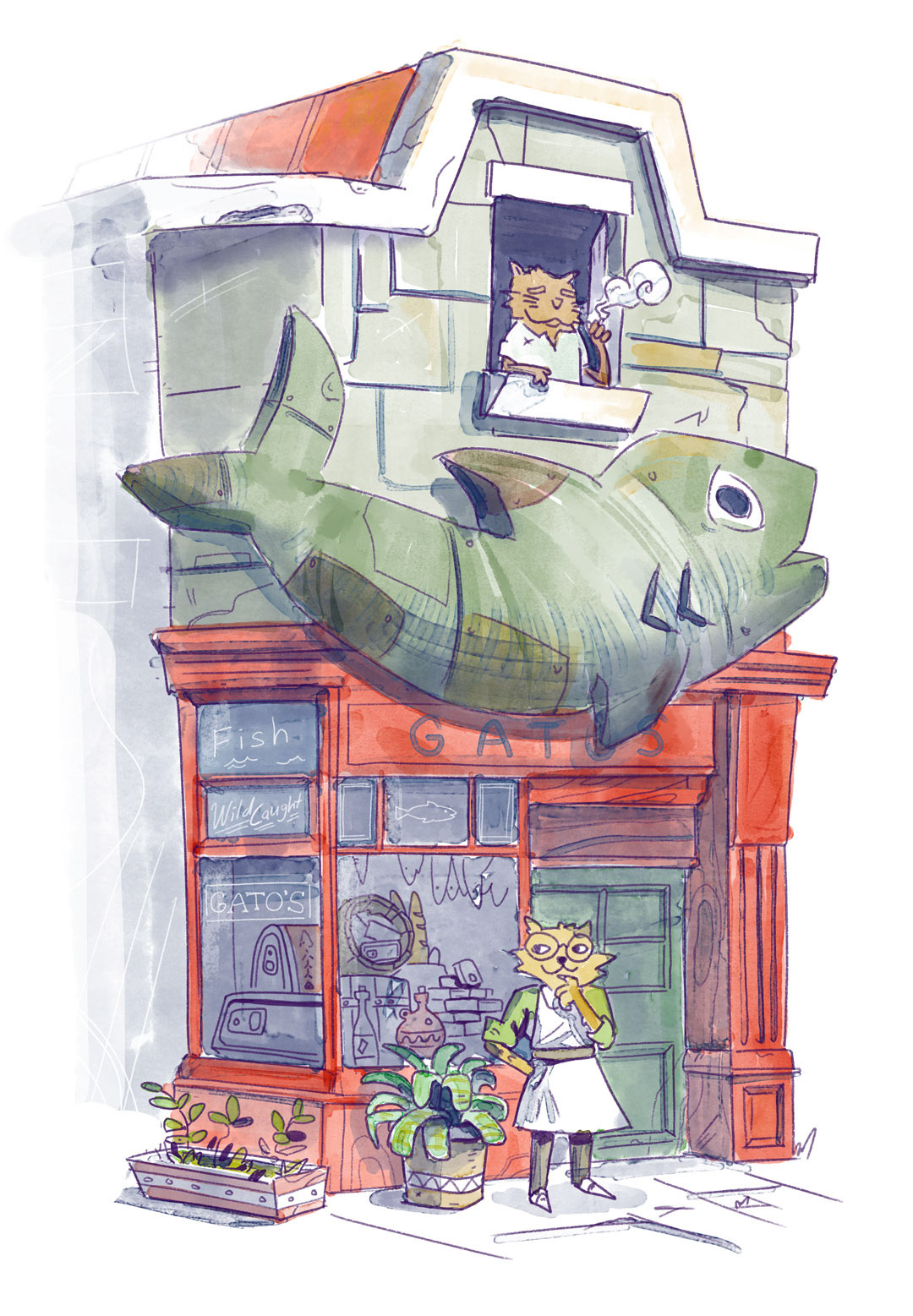 Gato's fish shop. Canned goods, smoked fish, and cat nip.